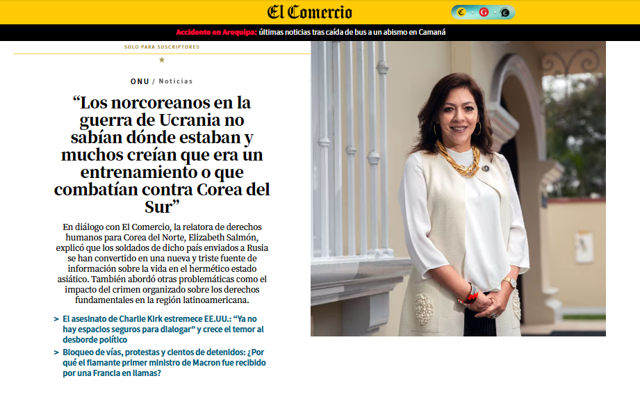 El Comercio: Entrevista a Elizabeth Salmón, relatora de derechos humanos para Corea del Norte y ex directora del IDEHPUCP.